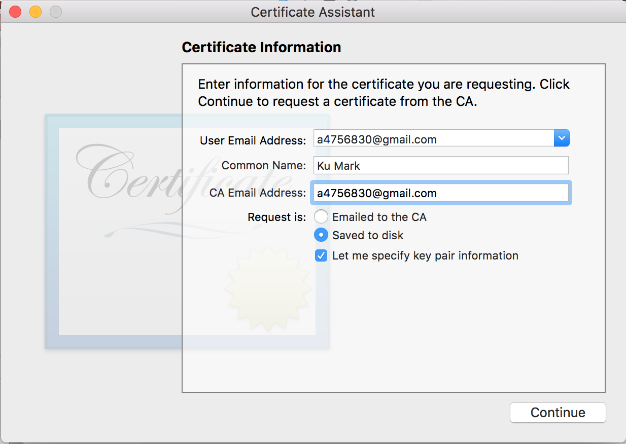 Keychain Access > Request a Certificate from Certifcate Authority...