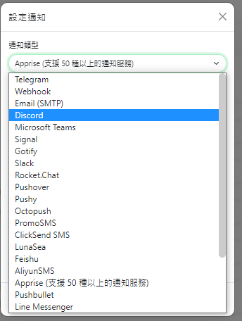 - 支援主流的聊天系統通知 Telegram、Discord、Gotify、Slack、Pushover、電子郵件等多種通知。