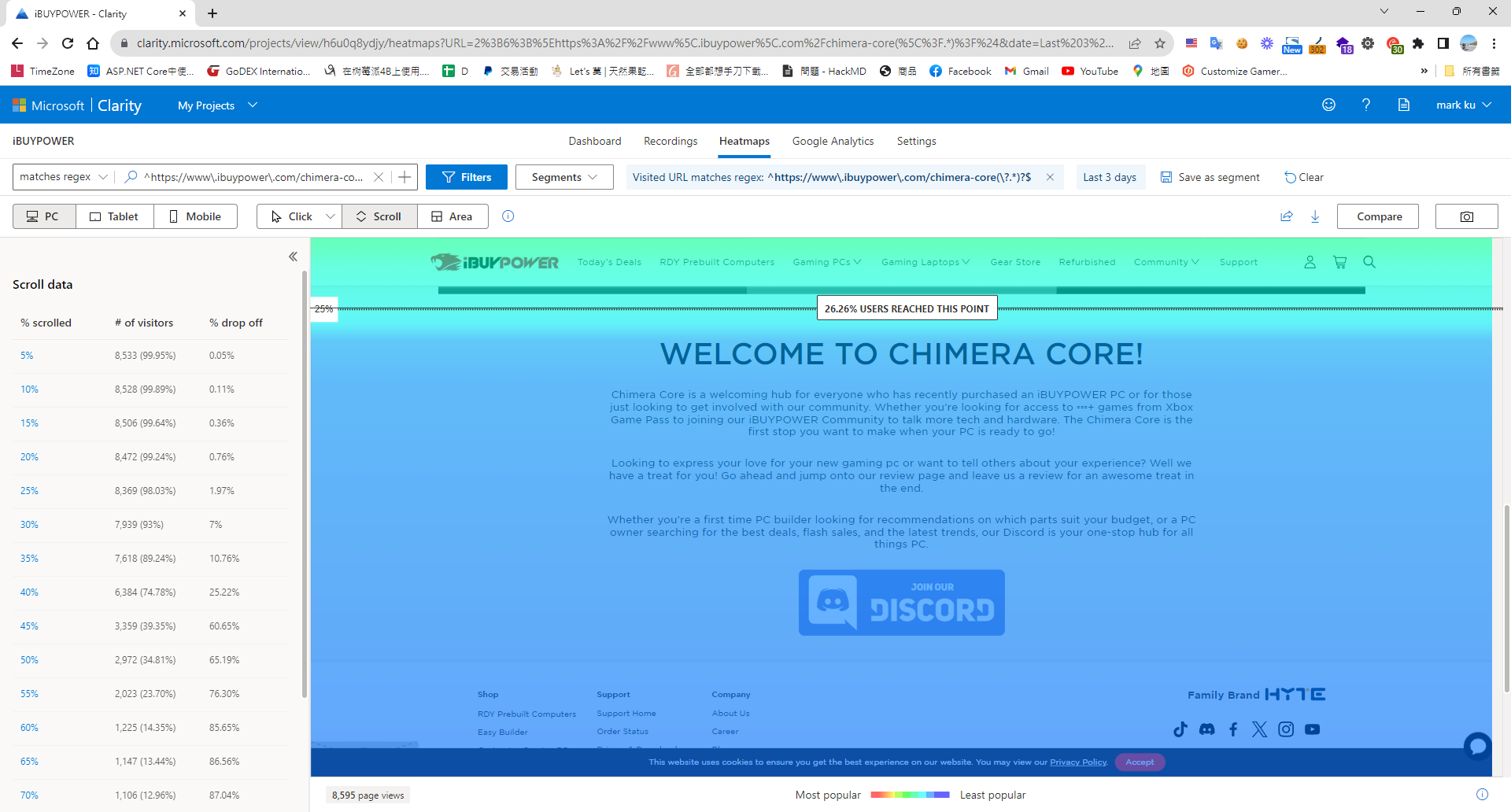 大多數的訪問者並未捲動到頁面最底部,也不喜歡捲動,也就意味著他們並未點擊加入Discord。