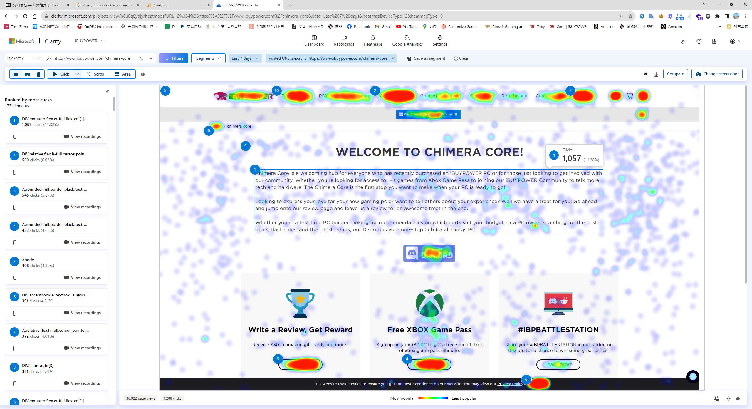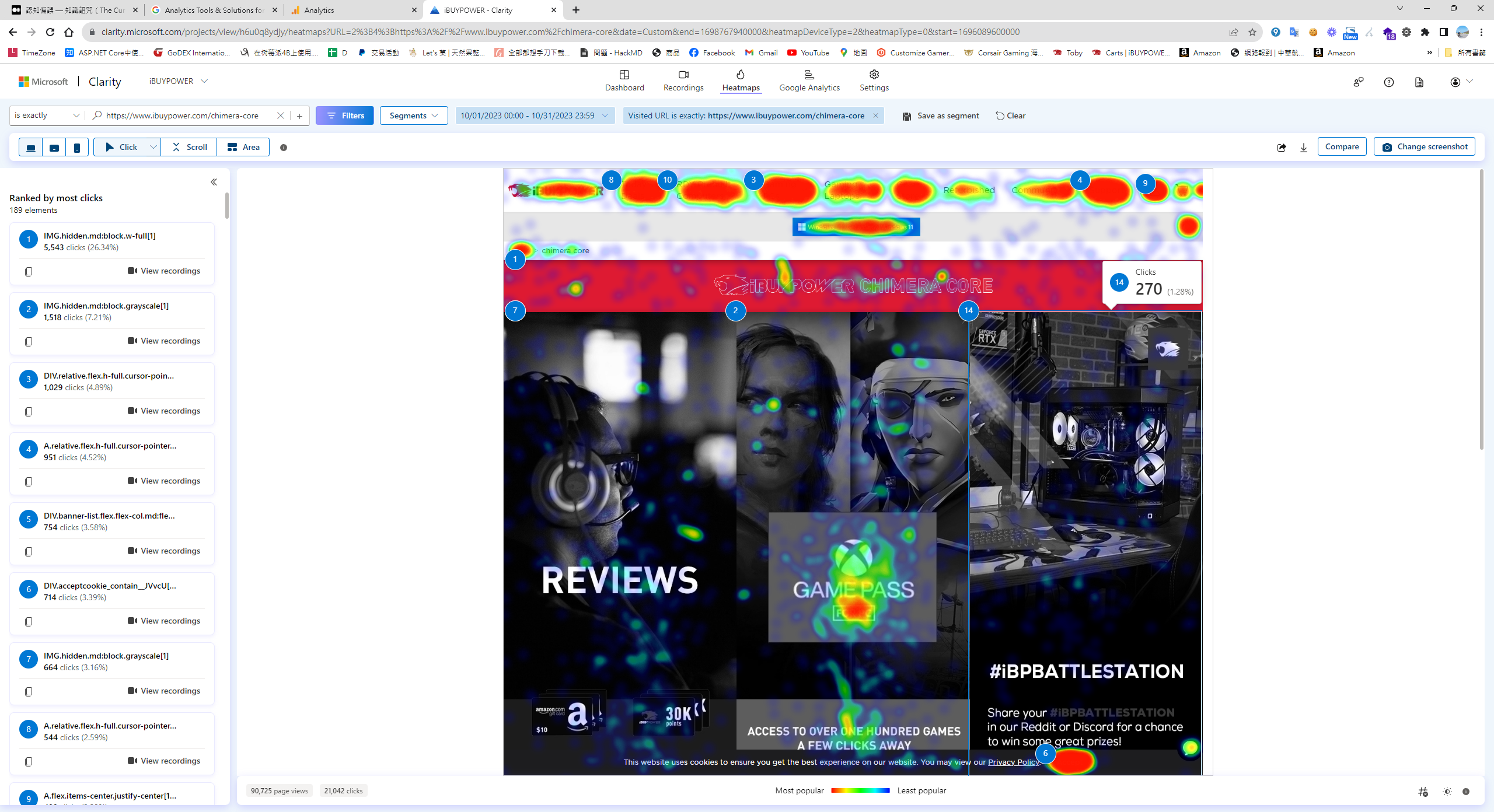 接著,我使用 Clarity 分析該頁面的問題