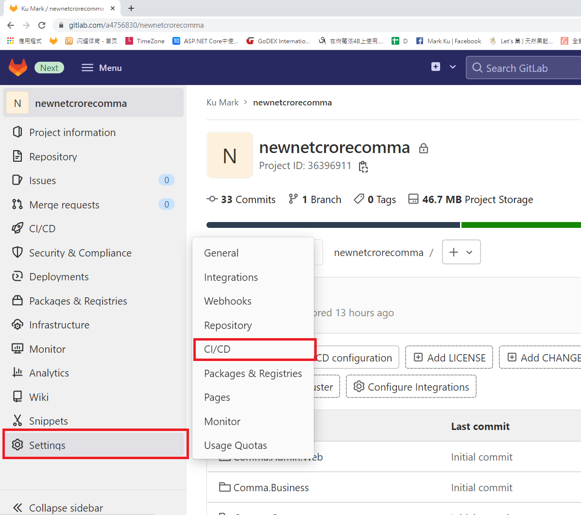 2. 接著我們進入 Gitlab 後台 > Settings > CI/CD