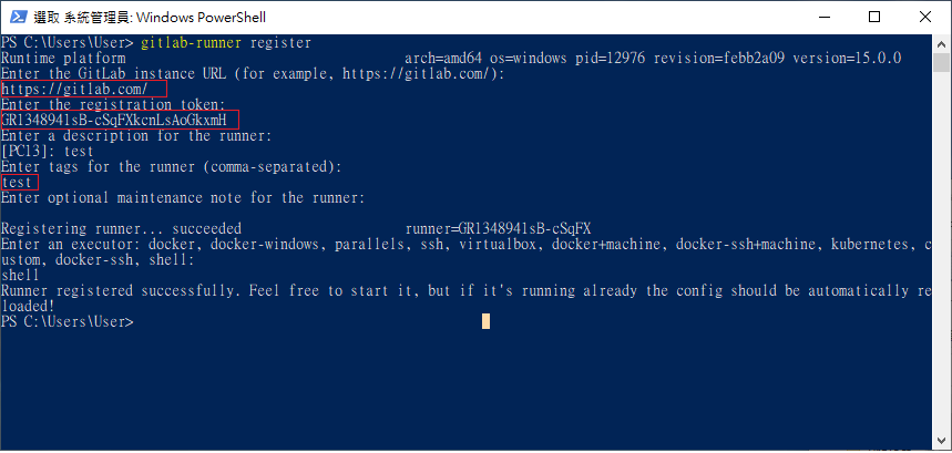6. 註冊 gitlab-runner