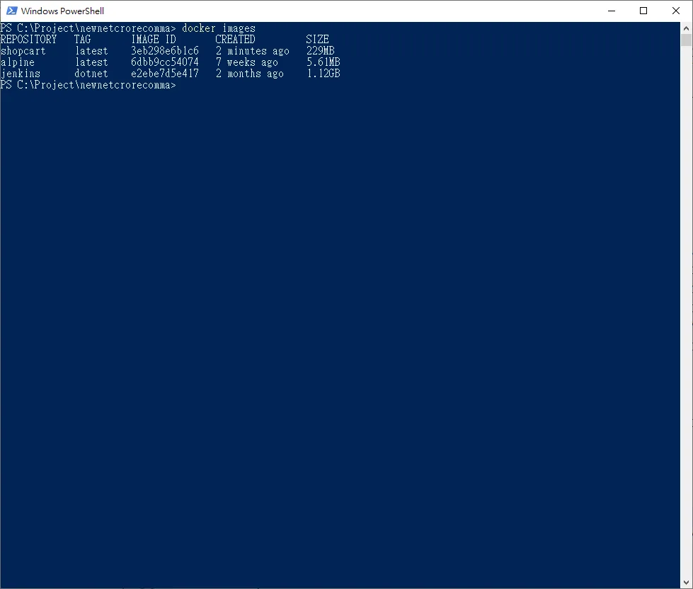 依據剛剛建立的映像檔,建立新的容器
