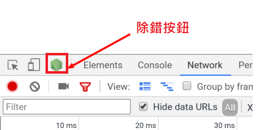 4.或是透過開發工具的除錯按鈕