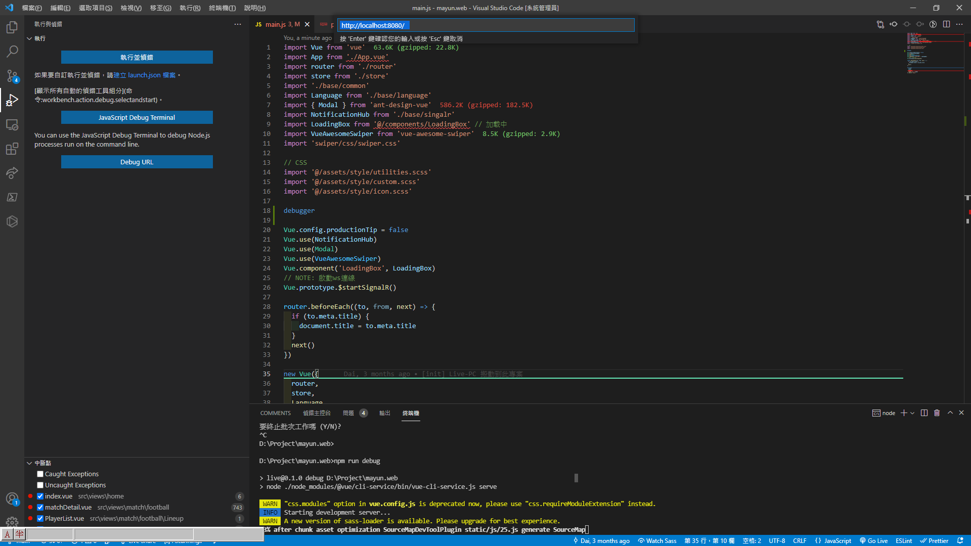 二、對 Vue cli (main.js) 偵錯