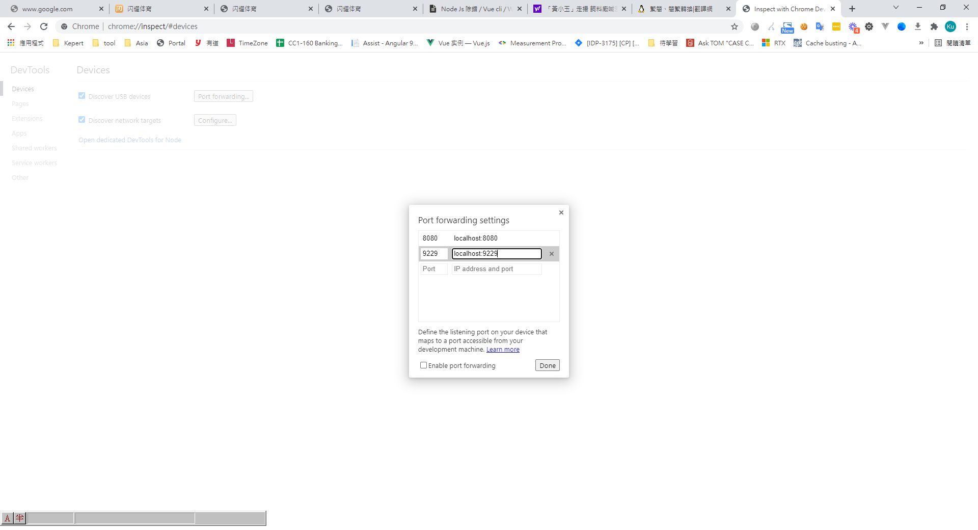 2. 接下來,在 Chrome 網址欄,鍵入 chrome://inspect,輸入後就可以看到下面的畫面。