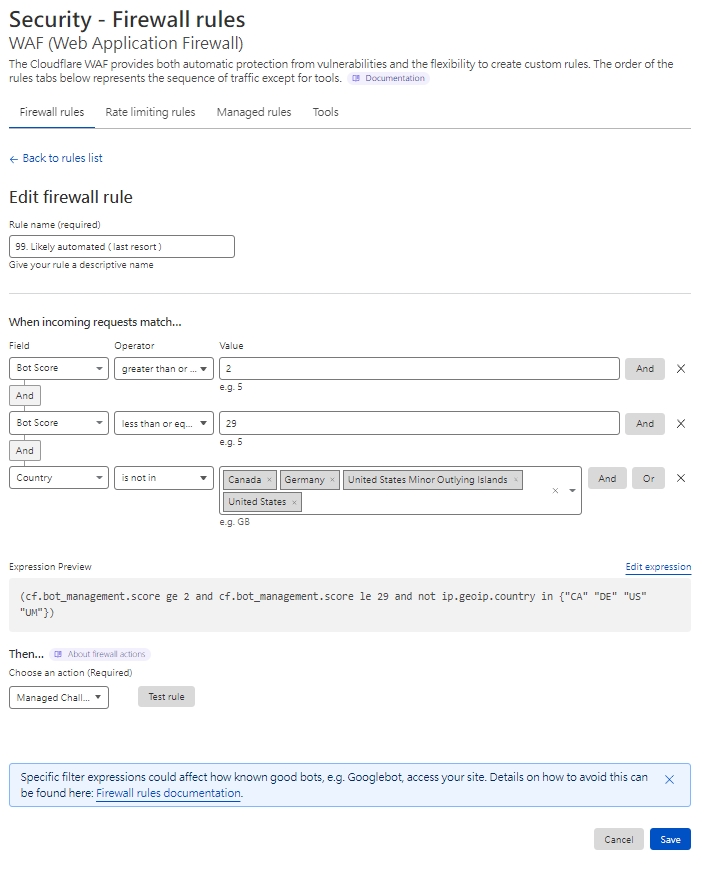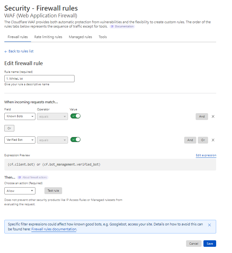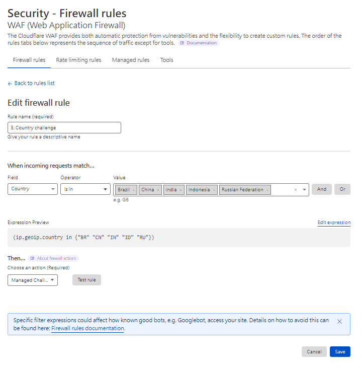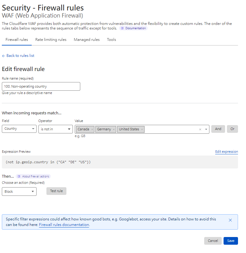 至Cloudflare 後台 > Secuity > WAF > Create firewall rule