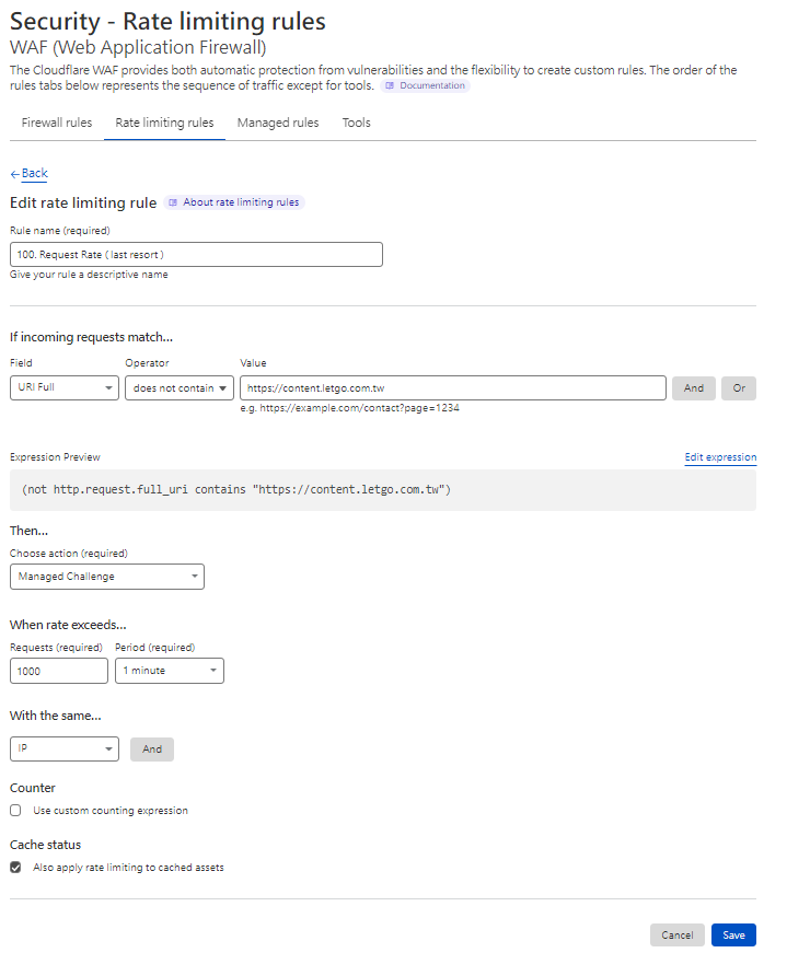 先前有寫一篇文章 也是有關防禦 DDoS 觀念,此篇將防禦規則實踐在 Cloudfalre WAF。