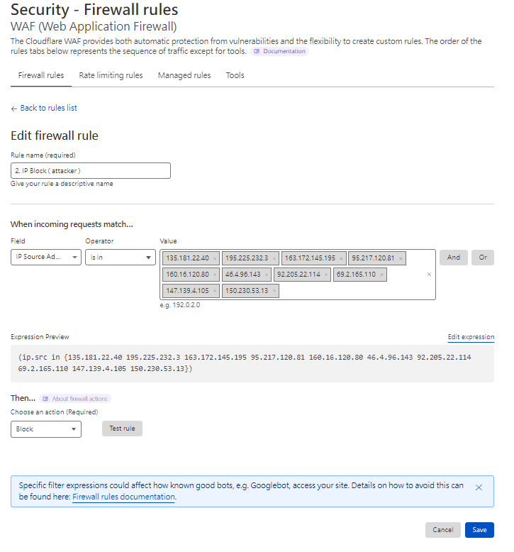 規則2. 黑名單 - IP Block ( attacker )