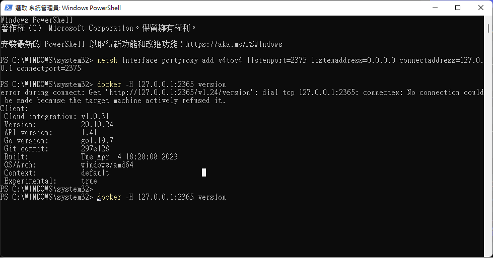 netsh interface portproxy delete v4tov4 listenport=2375 listenaddress=0.0.0.0