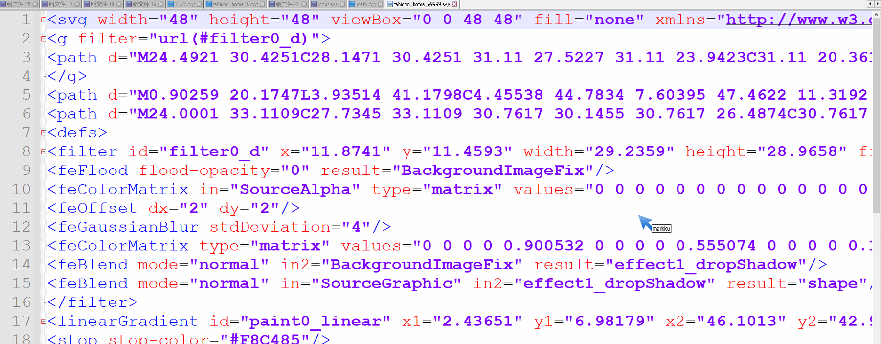 3. SVG 圖檔是可以透過文字檔開啟來編輯,結構如同 html。